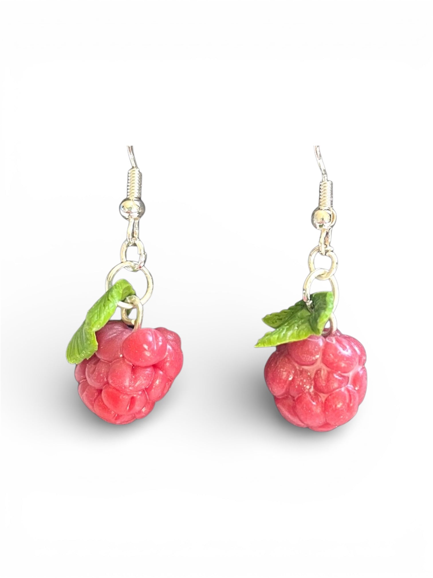 Hallon med blad tillverkat i polymerlera, örhängskrok i 925 Sterling Silver.