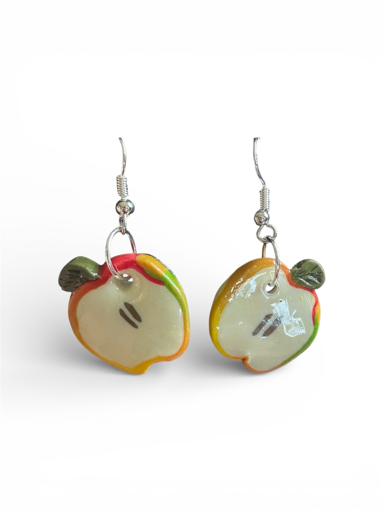 Örhängen äppelskivor. Tillverkade i polymerlera, örhängskrok i 925 Sterling silver. Ca 2 cm