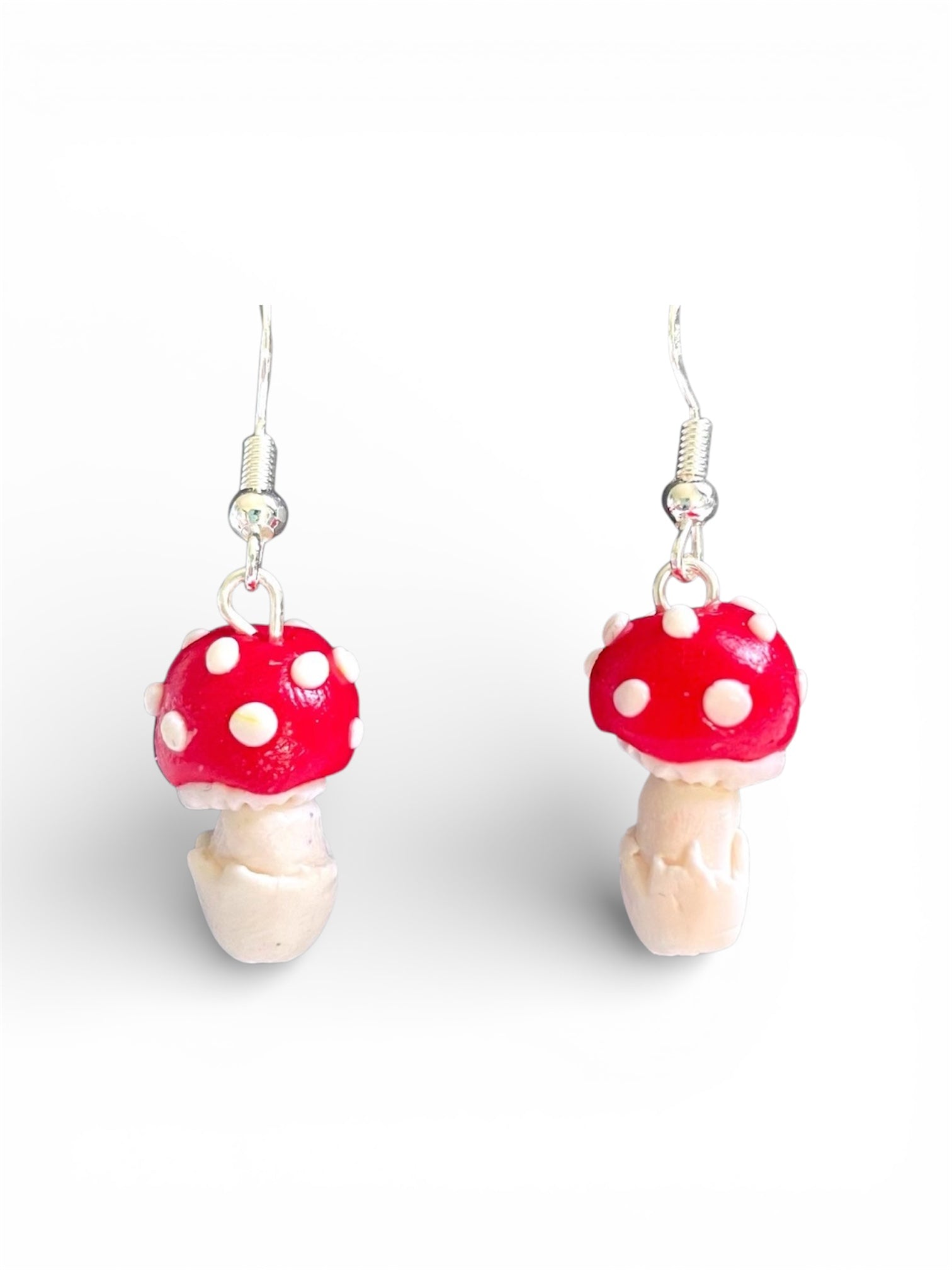 Röd flugsvamp tillverkat i polymerlera, örhängskrok i 925 Sterling Silver.