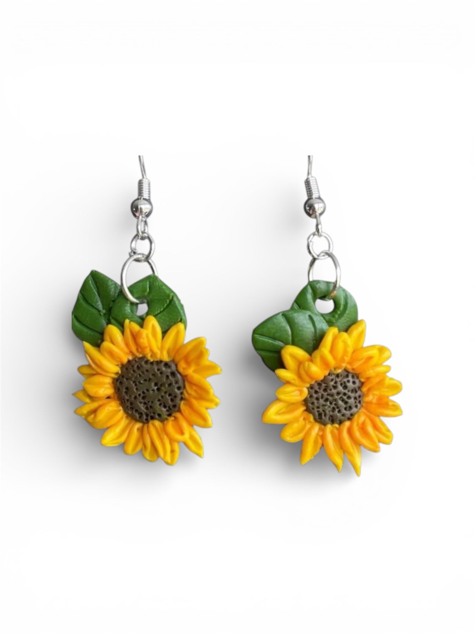 Solros tillverkad i polymerlera, örhängskrok i 925 Sterling Silver.