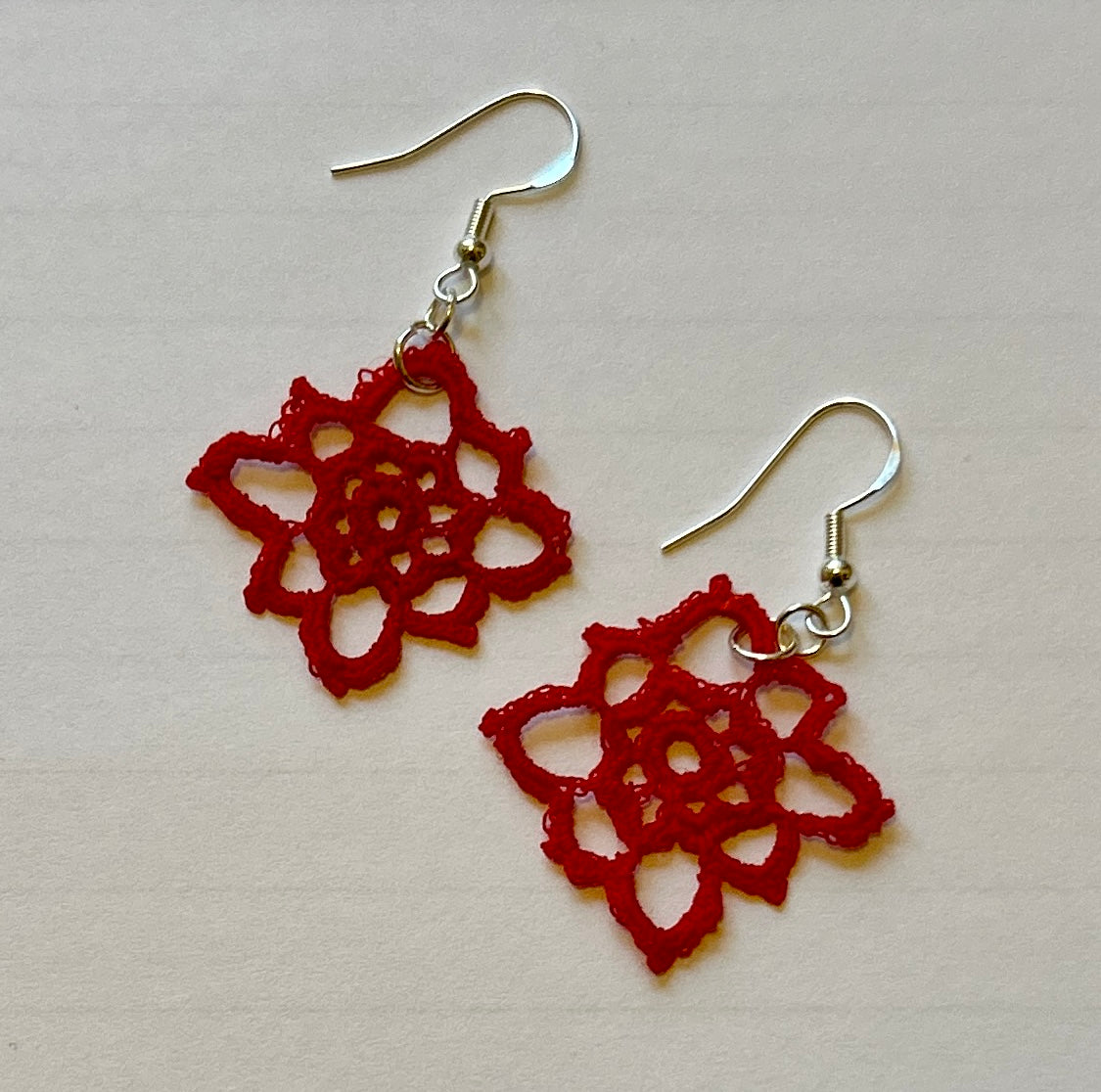 | Virkade örhängen av röd sytråd. Stärkta stela. Örhängskrok i Sterling Silver 926 |